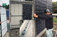 | WWB㈱マクサライトは超軽量薄型モジュールでありながら、ガラスモジュールと同等の発電量があります。壁面パネルは付近日射効率の良い場所への転用・連結が可能です。現場のスペース・法面など骨組みへ架台を取り付けてみてください。 | |